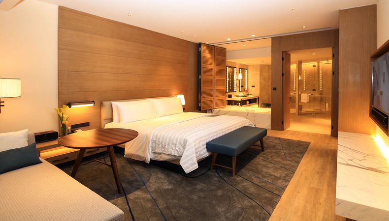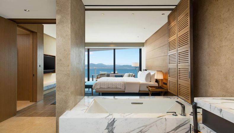 源于法国的Le Méridien艾美酒店品牌,走时尚雅致和文艺轻奢的路线,处处充满着法式浪漫气息。惠州艾美酒店是广东首家国际超五星艾美酒店,座落在“惠东最美海岸线”之一的小径湾。在施工过程中,CA88股份始终恪守品质,克服了酒店设计变更、工期紧张、材料垂直运输、海边天气潮湿等各种困难,采用金属截面泡防锈漆、排水管边封堵做法、墙面与天花凹槽做法、线盒隔音做法、线盒成品保护做法、防水坎做法等创新工法,为艾美酒店蕴刻出独有的雅韵和法式风情。