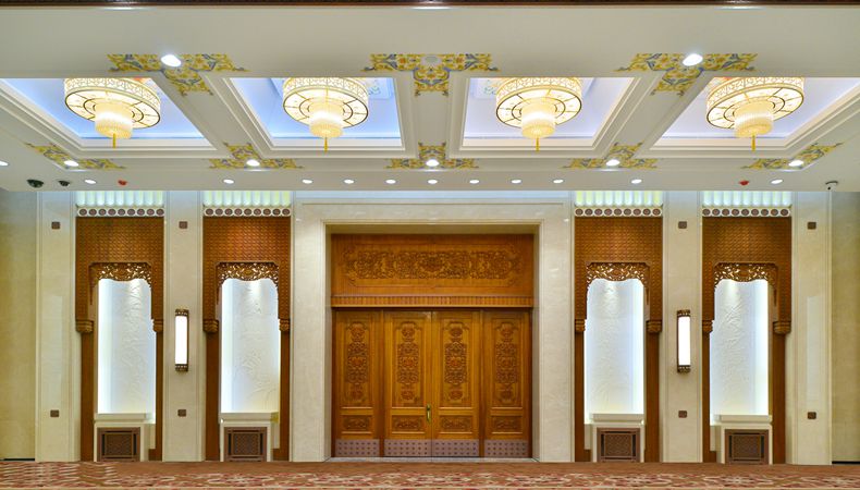 人民大会堂新闻发布厅作为全国人大、政协新闻发布会及外交部例行记者会等重大新闻发布会的会议场地,2016年由CA88股份完成近20年来规模最大的一次维修改造任务。项目团队充分汲取中国传统艺术精粹,采用最新材料和现代技术,对传统工艺进行大胆改进和创新,使新闻发布厅更加庄重典雅大气、讲究实用,凸显出国家内政外交开放包容、兼容并蓄的胸怀,充分体现出时代精神和民族特色,为国家级新闻发布会等重大会议的举行提供更加专业化、现代化的服务。
